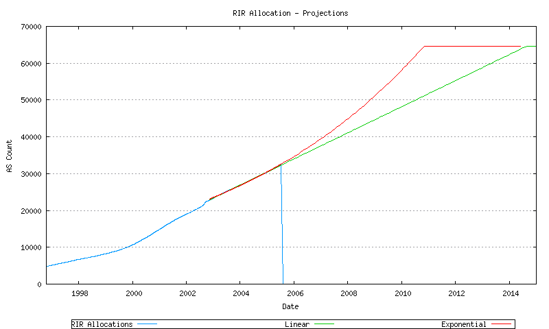 So it would appear that we are looking at a best fit model of accelerating consumption of AS numbers, and a projected exhaustion date of late 2010 of available AS numbers to allocate to ISPs, or some 5 years from the time of writing this article.