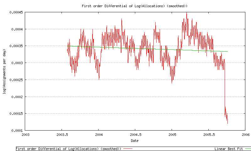 Taken together these factors lead to the conclusion that continued AS number consumption is based on a larger set of considerations than the dynamics of the service provider industry. Accordingly we can be a little more confident in making the assumption that the drivers for AS number consumption in the recent past will continue to be drivers in the near term future. This leads to some further confidence in a predictive technique that uses recent consumption data to generate trends that can made predictive forecasts of future demands.