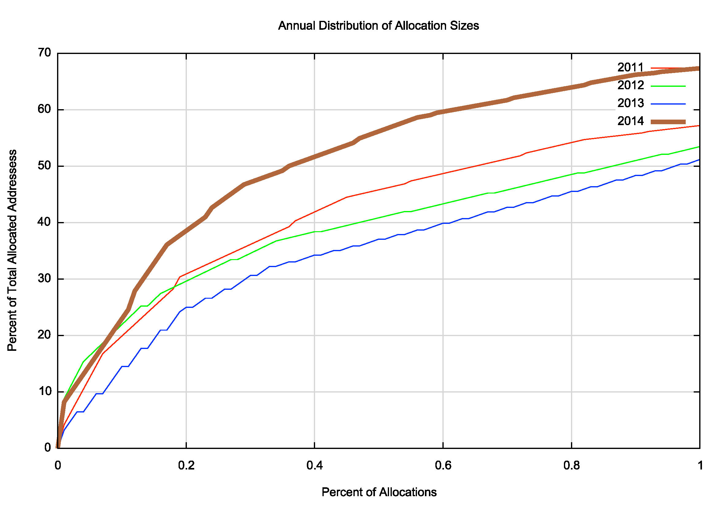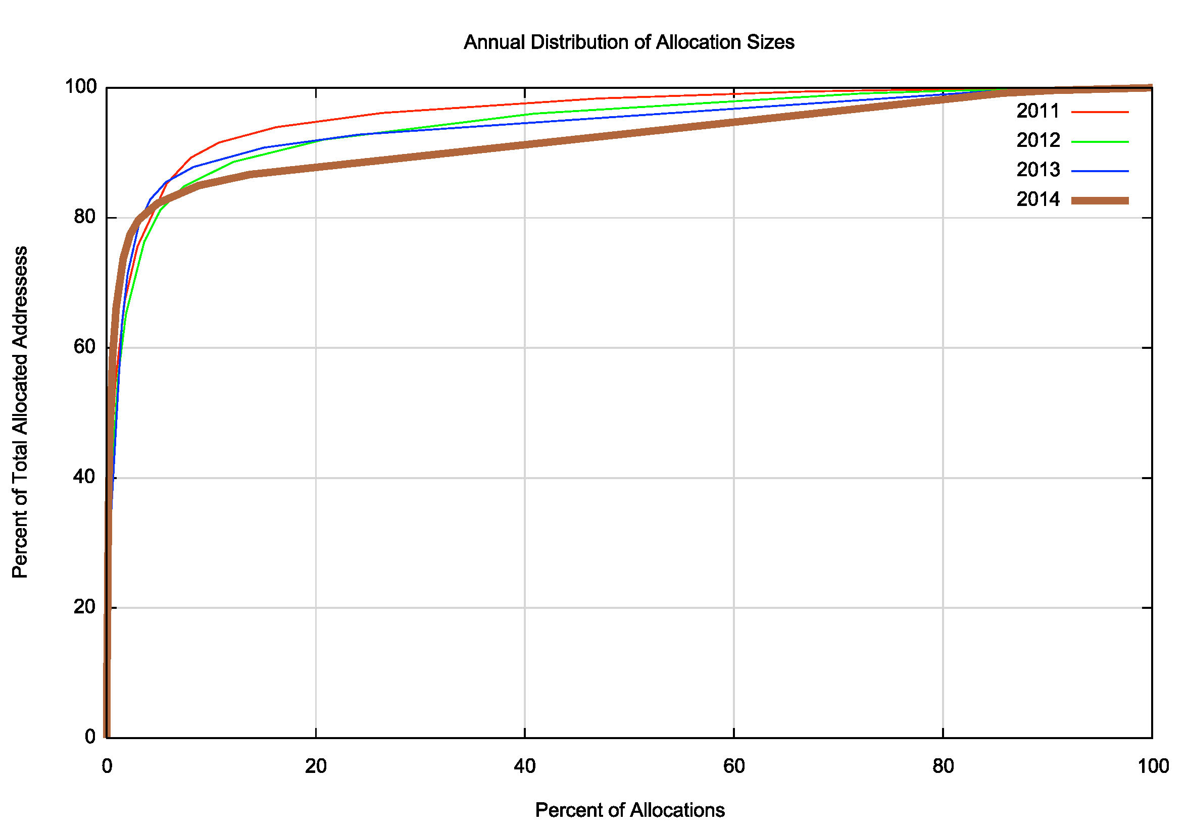 Figure 1 – IPv4 Allocation Distribution CDF 2011 - 2014