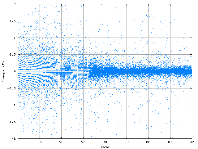 A close examination of the table reveals a greater level of stability in the routing system at this time. The short term (hourly) variation in the number of announced routes reduced, both as a percentage of the number of announced routes, and also in absolute terms. One of the other benefits of using large aggregate address blocks is that instability at the edge of the network is not immediately propagated into the routing core. The instability at the last hop is absorbed at the point where an aggregate route is used in place of a collection of more specific routes. This, coupled with widespread adoption of BGP route flap damping, was very effective in reducing the short term instability in the routing space during this period.