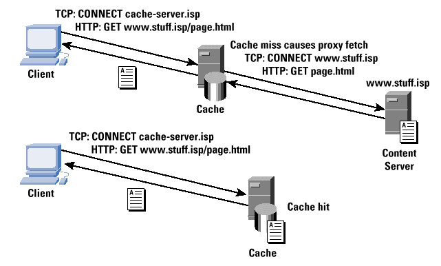 When using a proxy cache, not much is altered in the transaction. The client opens a HTTP session with the proxy cache, and directs the URL request to the proxy cache instead (Figure 1).